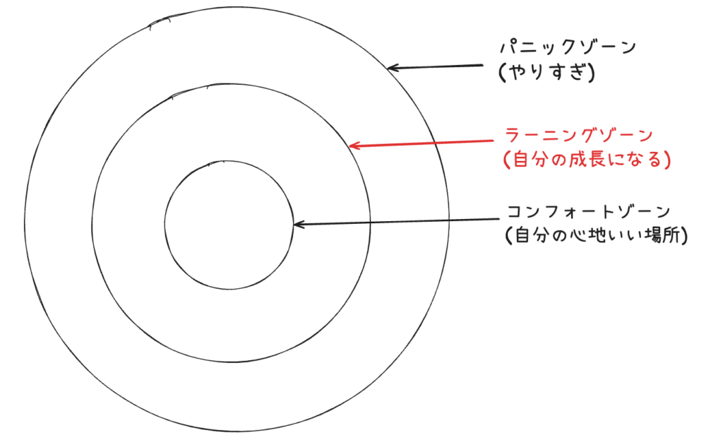 ラーニングゾーンは「自分の成長になる」ゾーンと書いていますよね。